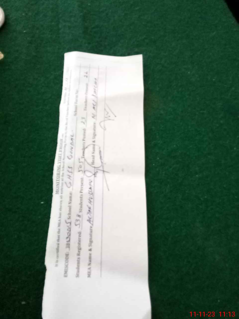 | Monitoring Date: 11-11-2023 | Start Time: 11-11-2023 10:39 AM | End Time: 11-11-2023 11:15 AM | Name of MEA: AL**** HU**** | |