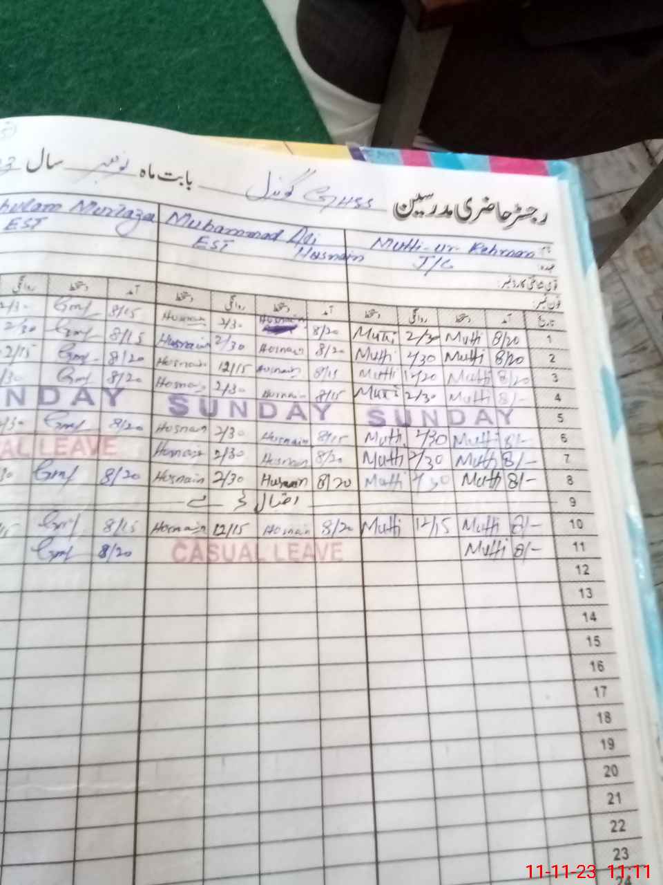| CNIC | Full Name | Designation | R/C | Absence During Last Calender Month |