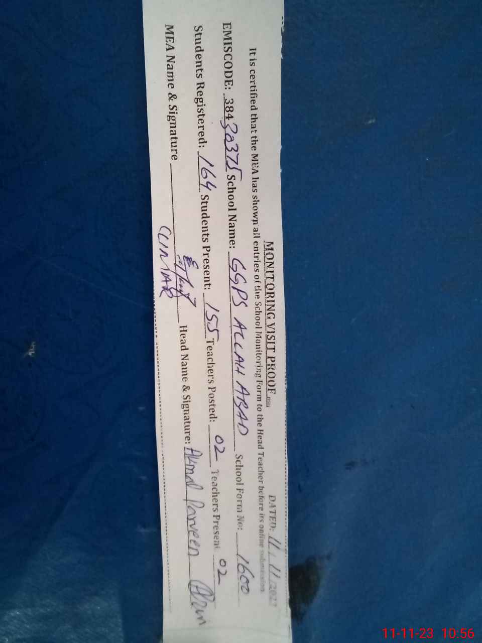 | EMIS Code: 38430375 | Name of School: GGPS ALLAH ABAD | |||