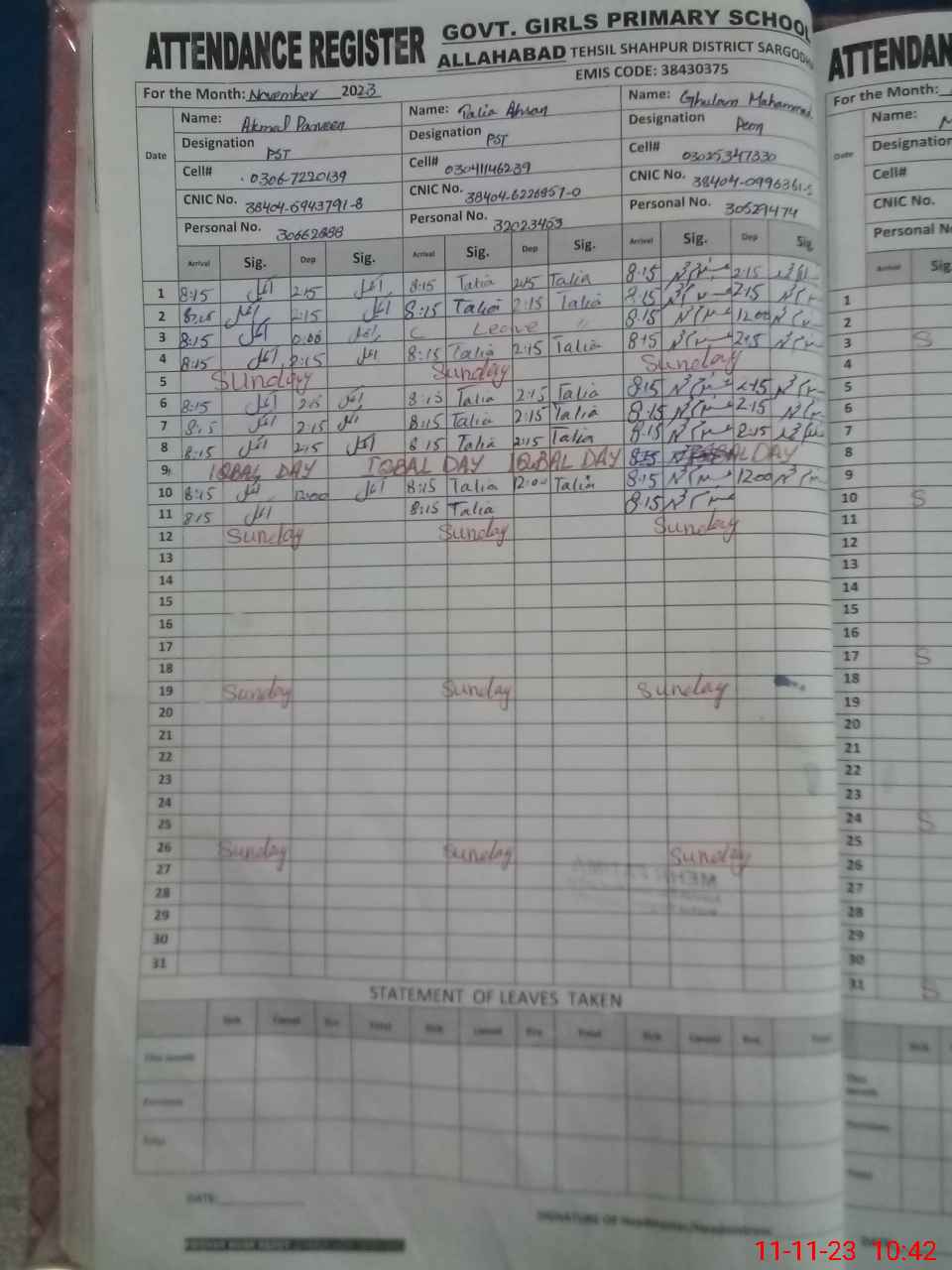 | Name: AK**** PA**** Designation: (School Headmaster's/Headmistress's) PST Phone/Cell Number: 03**** |