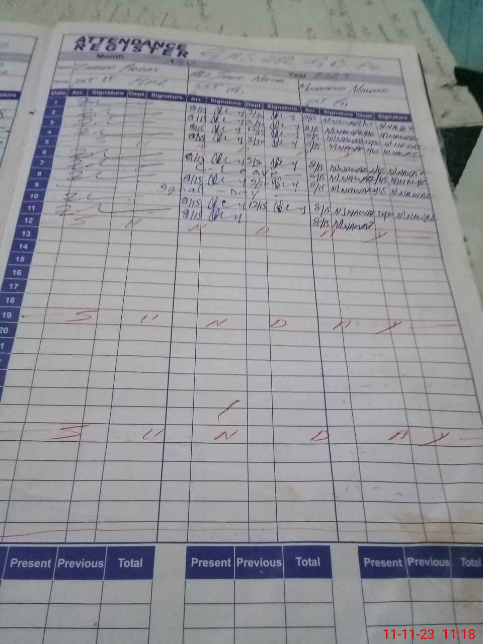 | CNIC | Full Name | Designation | R/C | Absence During Last Calender Month |