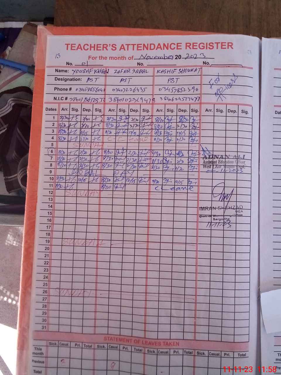 | Name: YO**** KH**** Designation: (School Headmaster's/Headmistress's) PST Phone/Cell Number: 03**** |