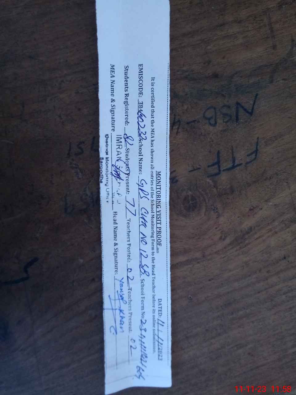 | EMIS Code: 38460232 | Name of School: GPS CHAK NO.12 SB | |||
