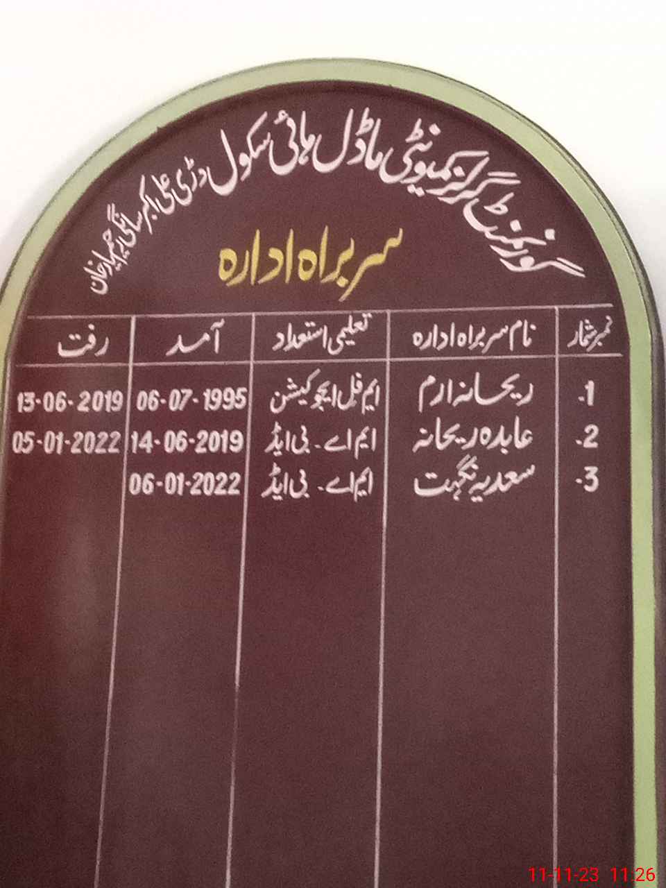 | EMIS Code: 31331107 | Name of School: GGHS DARI ALI AKBAR SANGHI | |||