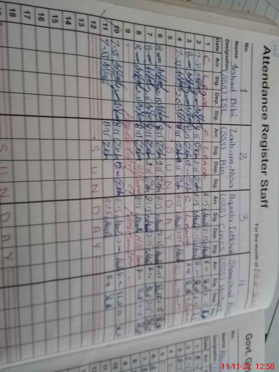 | CNIC | Full Name | Designation | R/C | Absence During Last Calender Month |