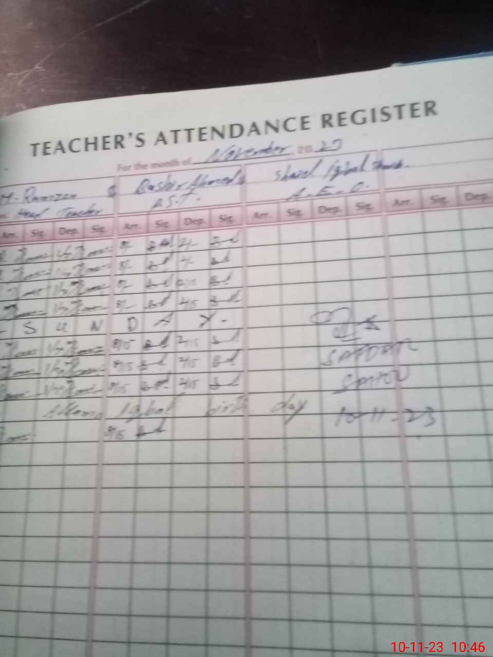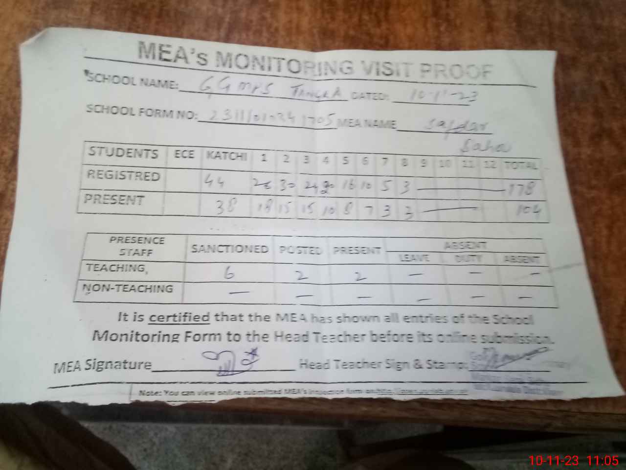 | Attendance Register | Head Teacher | MEA with School | Visit Proof |