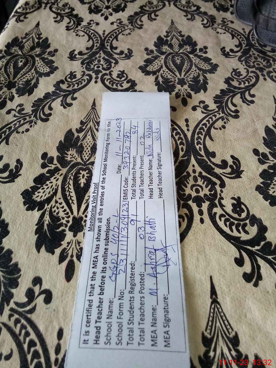 | Certified that this School was Inspected by the Undersigned MEA/DMO Today and the Information Stated Above is as Per Record. | |||||