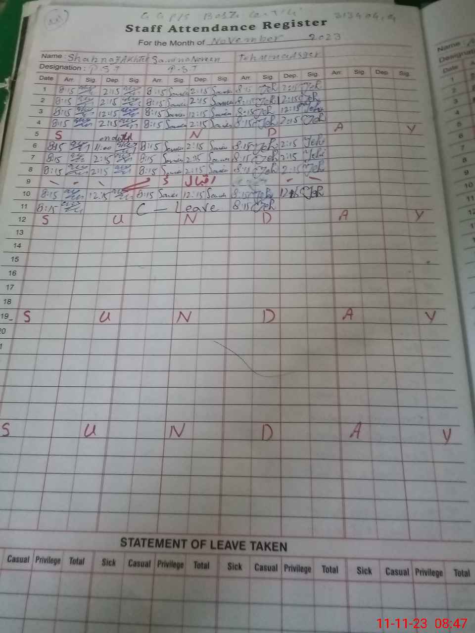 | Name: Sa**** No**** Designation: (School Headmaster's/Headmistress's) PST Phone/Cell Number: 03**** |