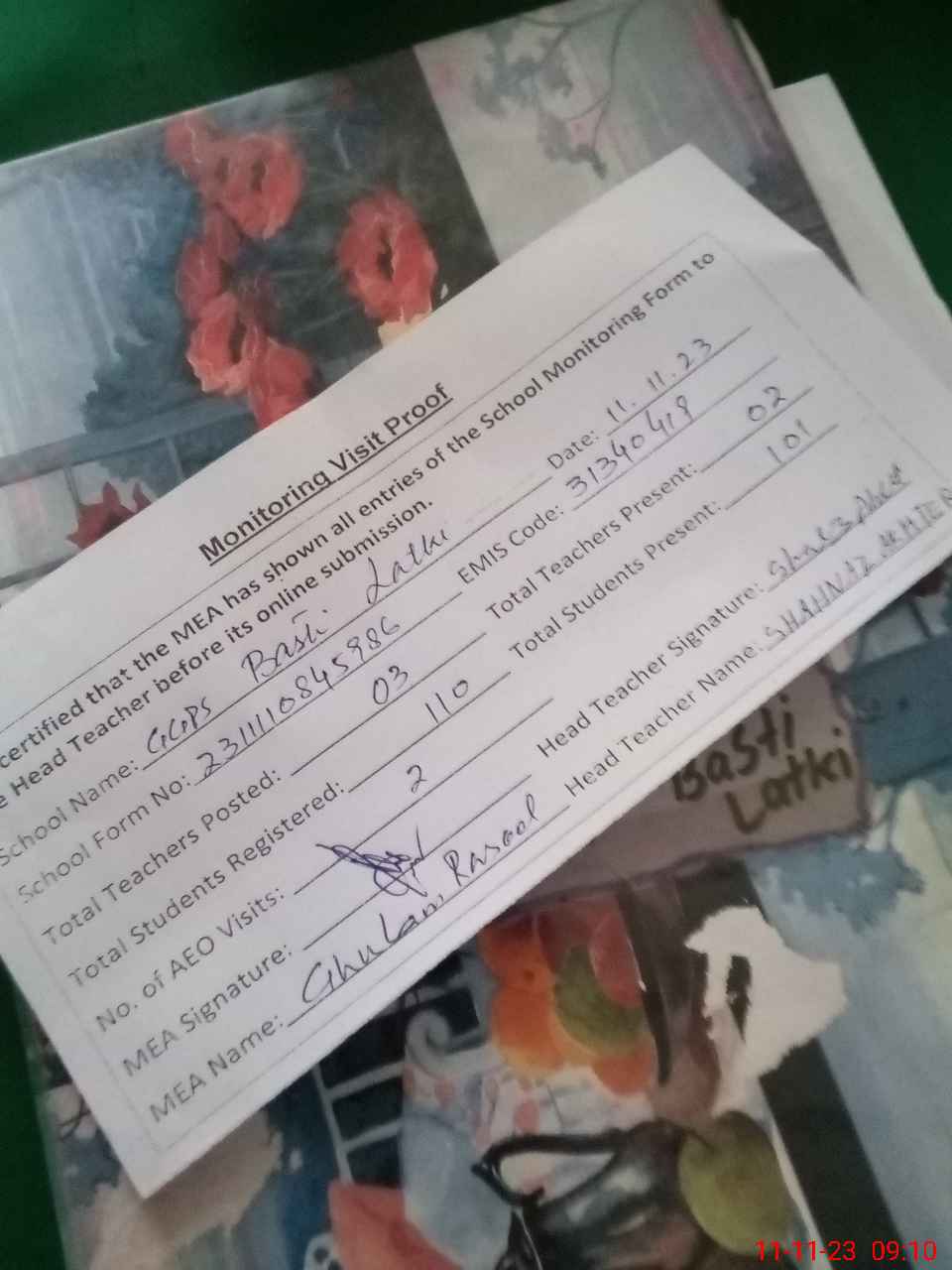 | Attendance Register | Head Teacher | MEA with School | Visit Proof |