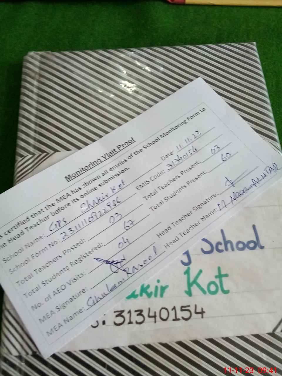 | EMIS Code: 31340154 | Name of School: GPS SHAKIR KOT | |||