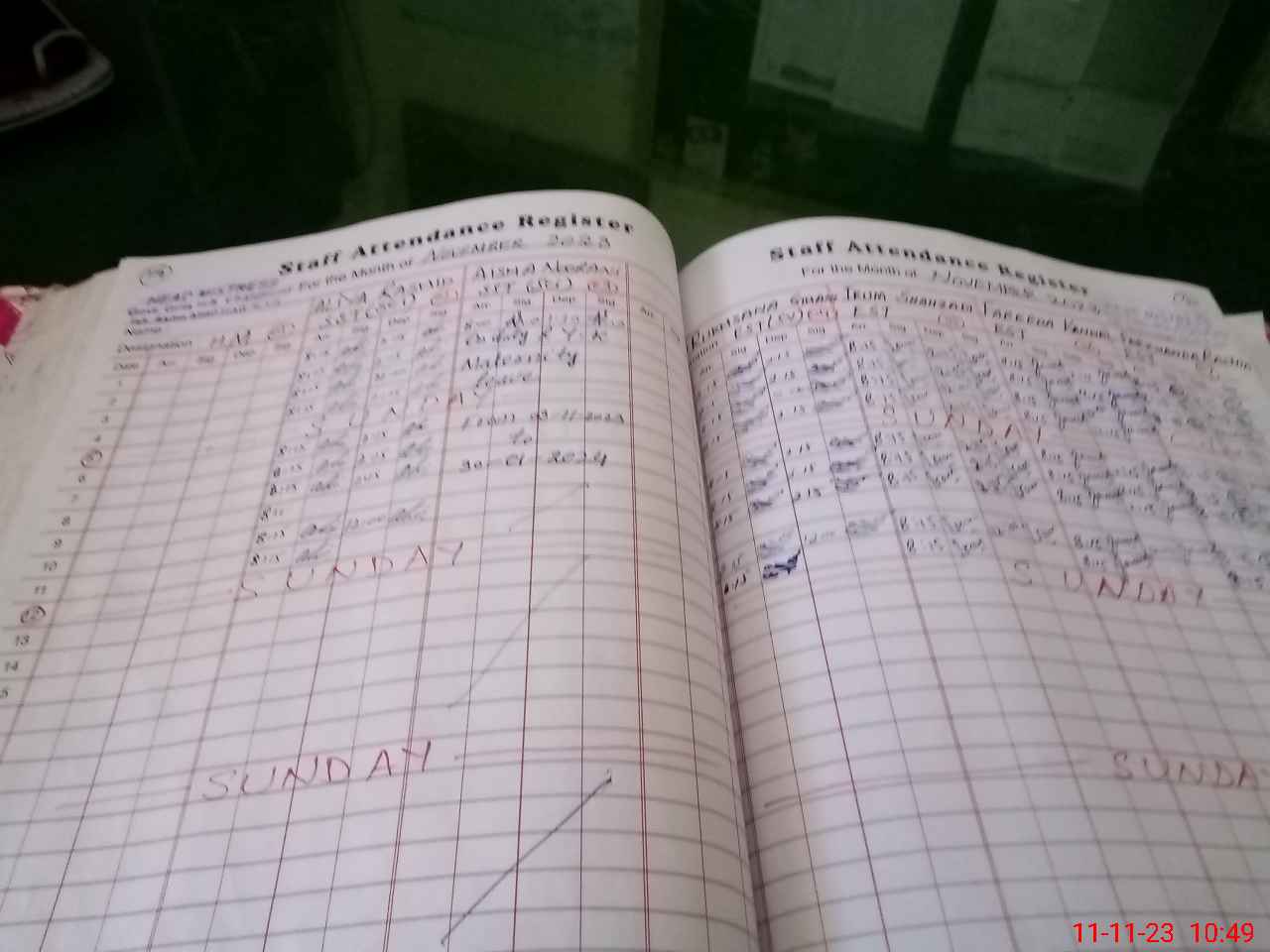 | 31**** | Ai**** No**** | 1 | 0 | 0 | 0 | 0 | 0 | 0 | 0 | 0 | 0 | Absent (Un-Authorized) | |