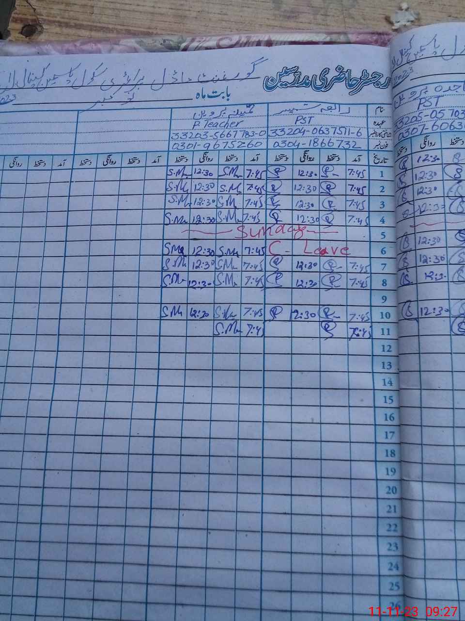 | Name: SA**** AK**** Designation: (School Headmaster's/Headmistress's) PST Phone/Cell Number: 03**** |