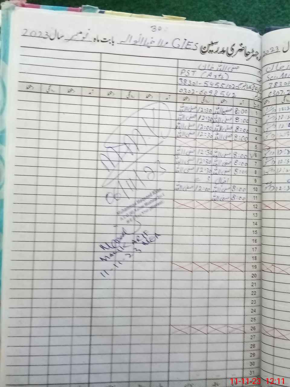 | Name: MU**** IQ**** KH**** Designation: (School Headmaster's/Headmistress's) PST Phone/Cell Number: 03**** |