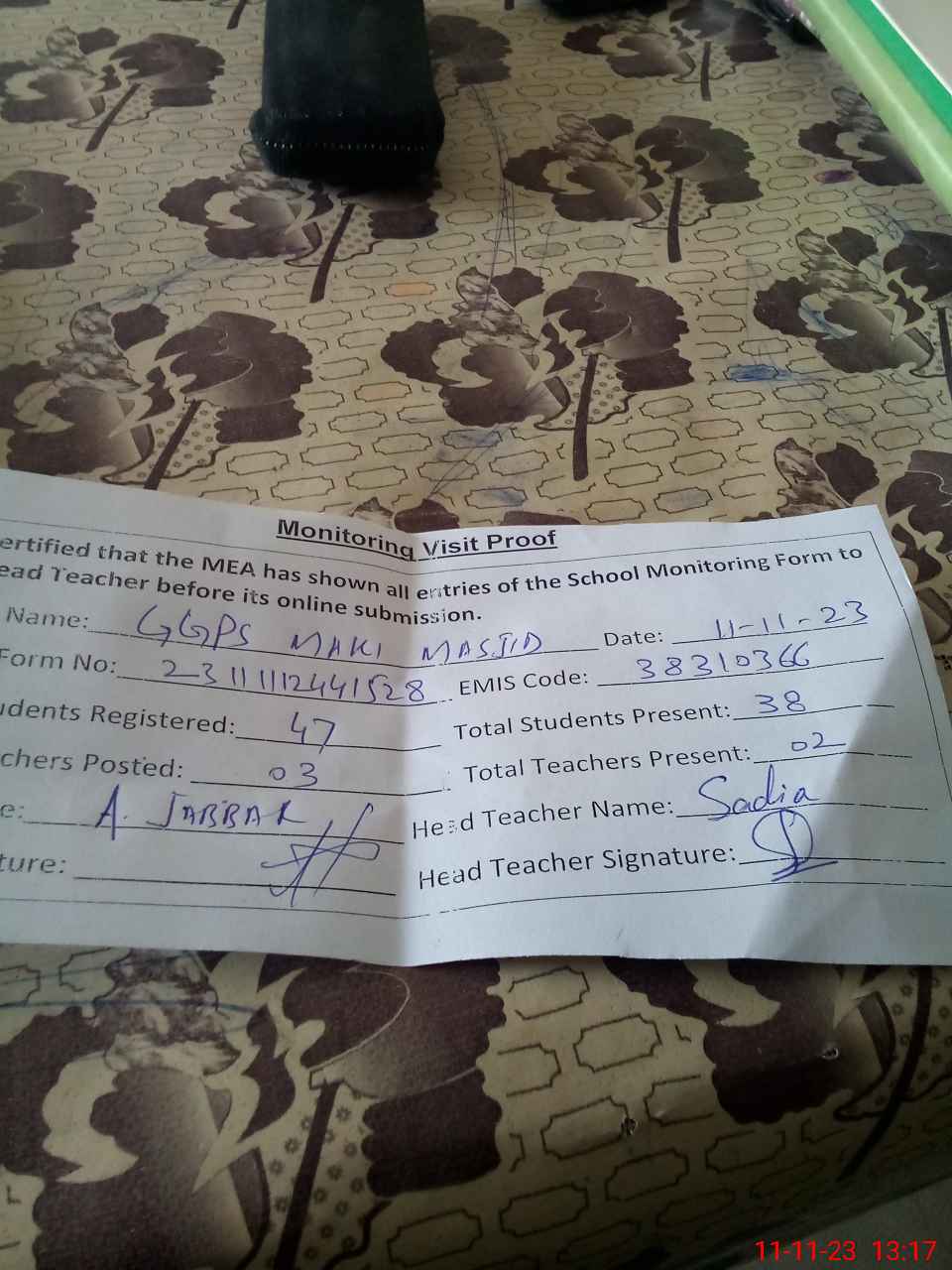 | EMIS Code: 38310366 | Name of School: GGPS MAKKI MASJID | |||