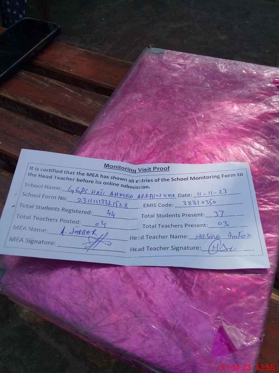 | EMIS Code: 38310350 | Name of School: GGPS HAJI AHMED ARAIN WALA | |||