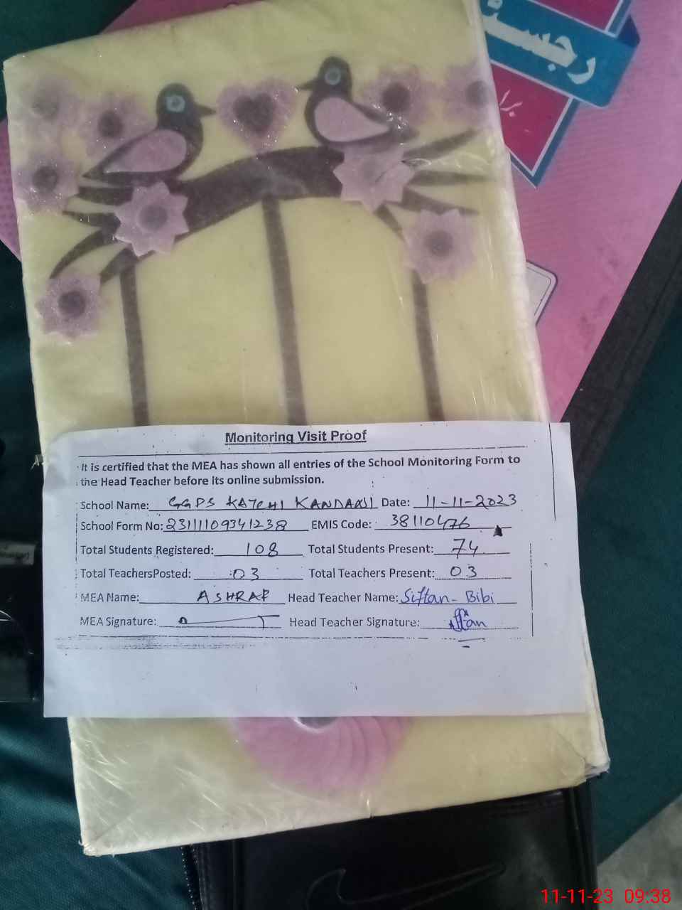 | Attendance Register | Head Teacher | MEA with School | Visit Proof |