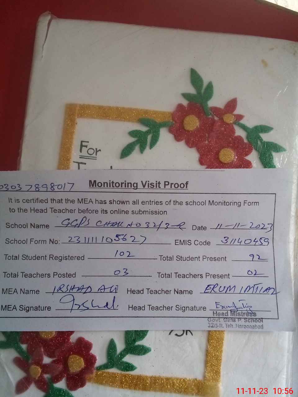 | EMIS Code: 31140459 | Name of School: GGPS CHAK NO 32 3R | |||
