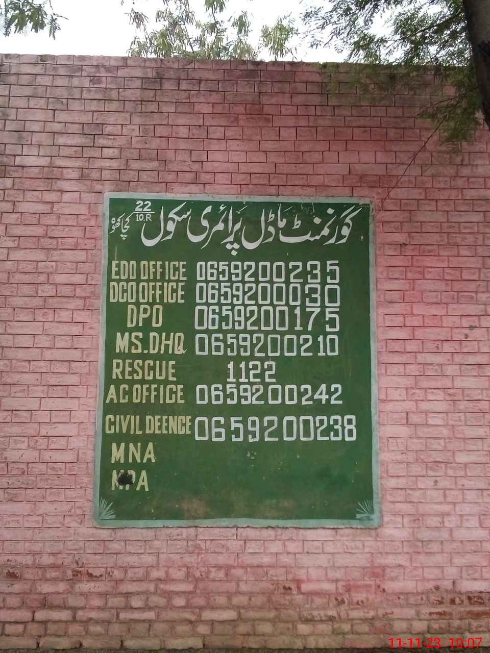 | PP No.: 209 | NA No.: 153 | Mauza: 22/10R | UC Name: CHAK NO.23/10-R | UC No.: 96 |