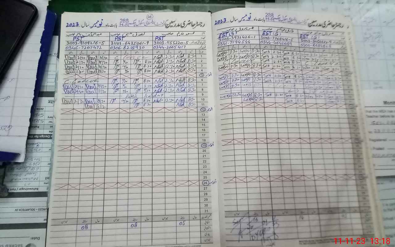 | CNIC | Full Name | Designation | R/C | Absence During Last Calender Month |