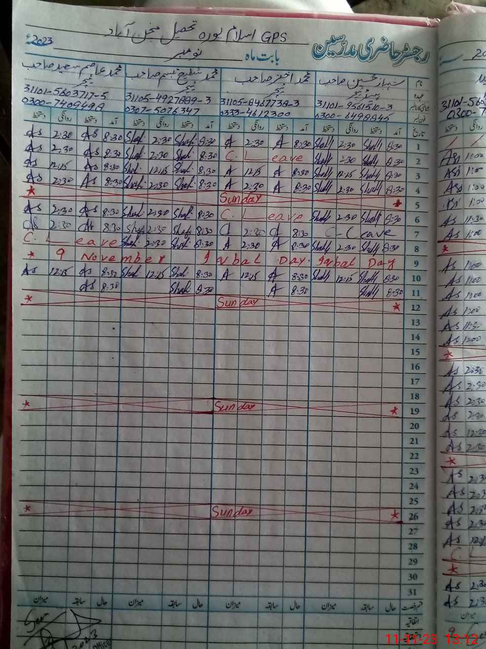 | CNIC | Full Name | Designation | R/C | Absence During Last Calender Month |