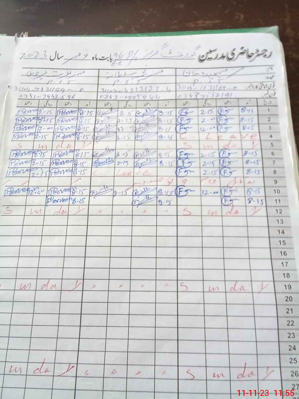 | CNIC | Full Name | Designation | R/C | Absence During Last Calender Month |