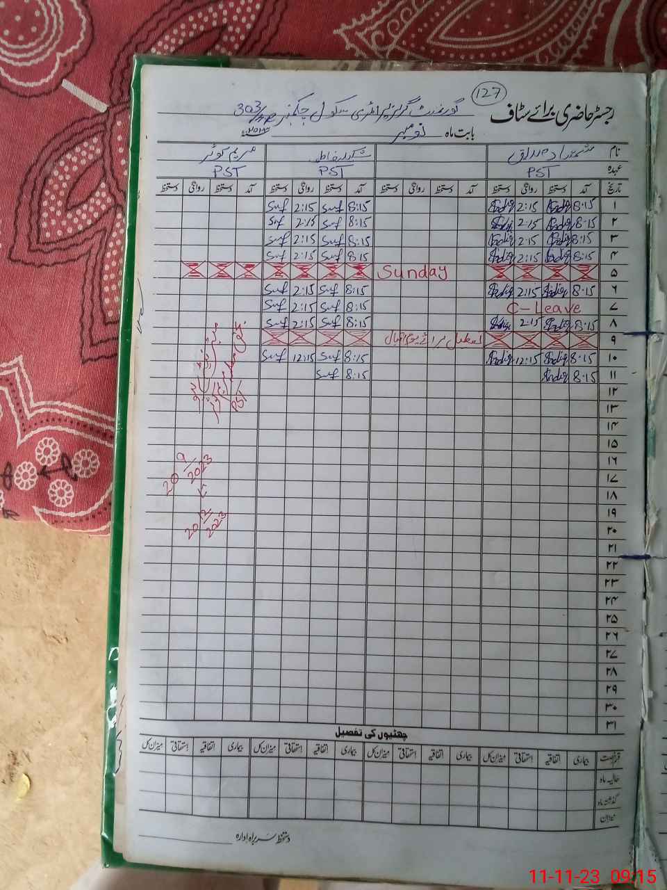 | 31**** | Ma**** Ko**** | PST | Regular | 31 | 0 | 0 | 31 | 0 | 0 | 0 | 0 | 0 | Maternity |