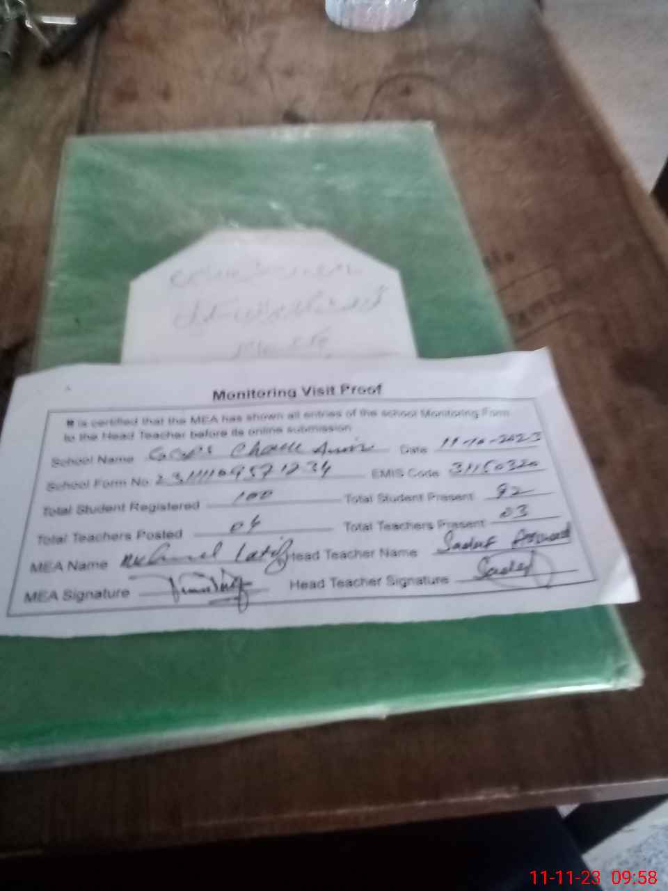 | EMIS Code: 31150320 | Name of School: GGPS CHAK AMEER | |||