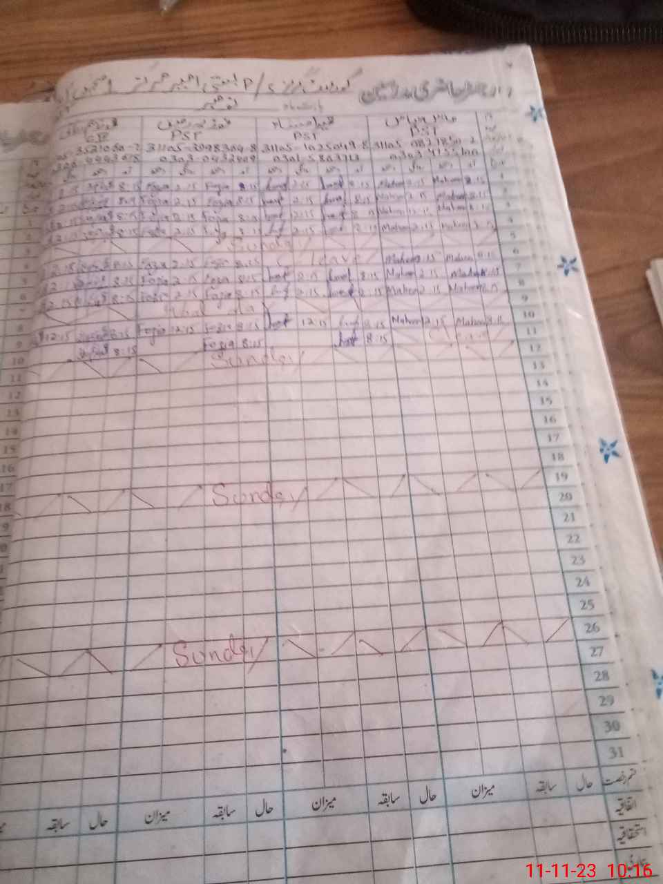 | CNIC | Full Name | Designation | R/C | Absence During Last Calender Month |