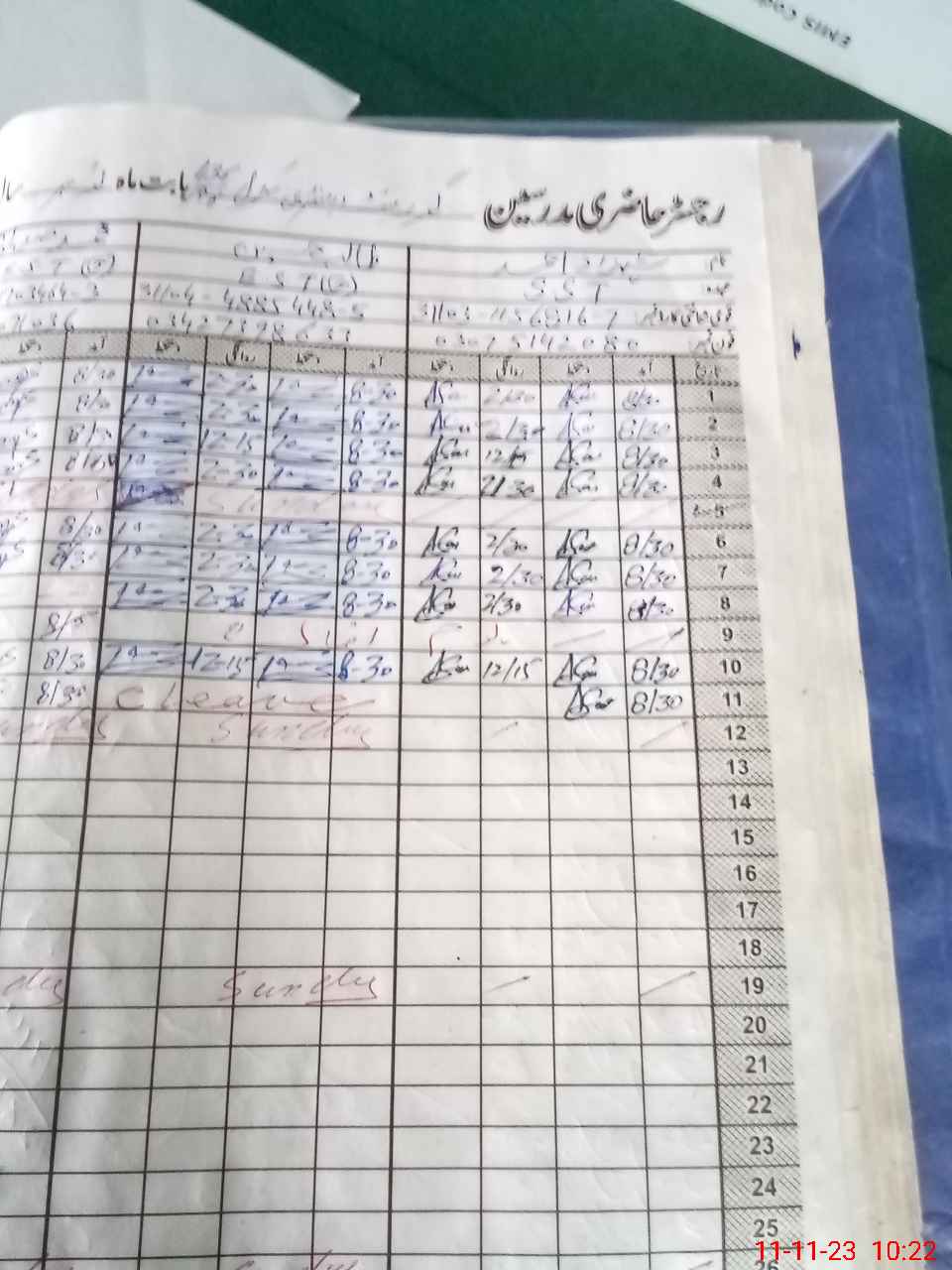 | CNIC | Full Name | Designation | R/C | Absence During Last Calender Month |