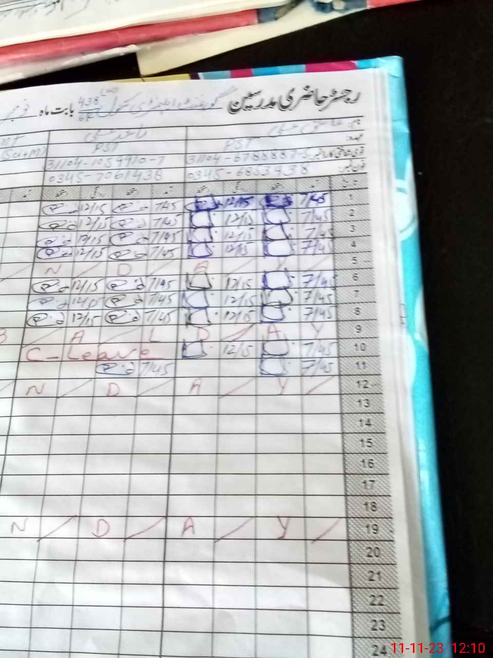 | CNIC | Full Name | Designation | R/C | Absence During Last Calender Month |
