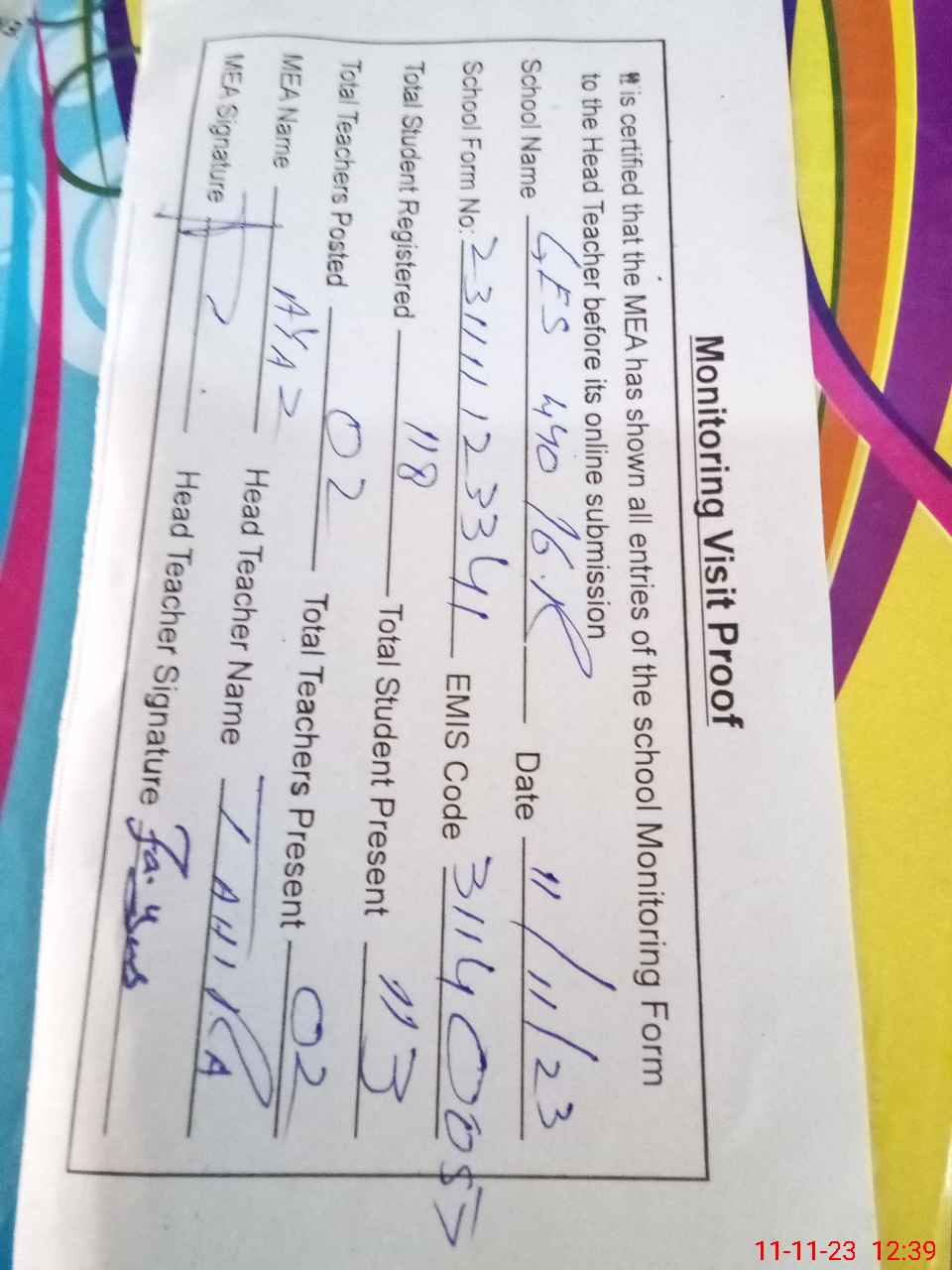 | EMIS Code: 31140057 | Name of School: GES CHAK 440/6-R EAST | |||