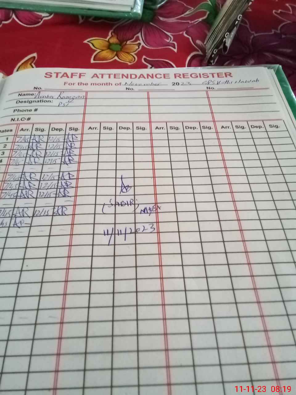 | Name: SA**** Designation: (School Headmaster's/Headmistress's) PST Phone/Cell Number: 03**** |