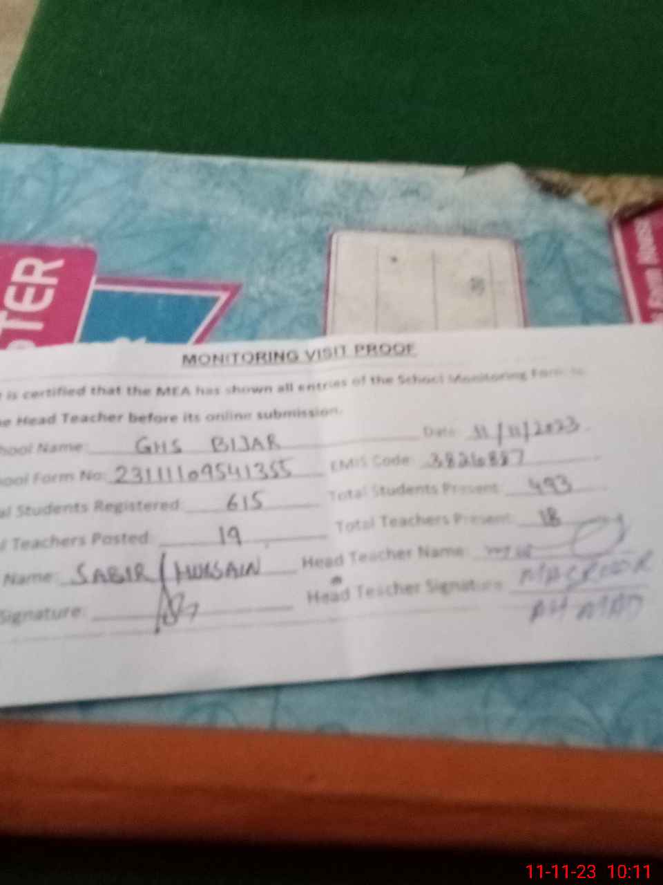 | EMIS Code: 38210887 | Name of School: GHS BIJAR | |||