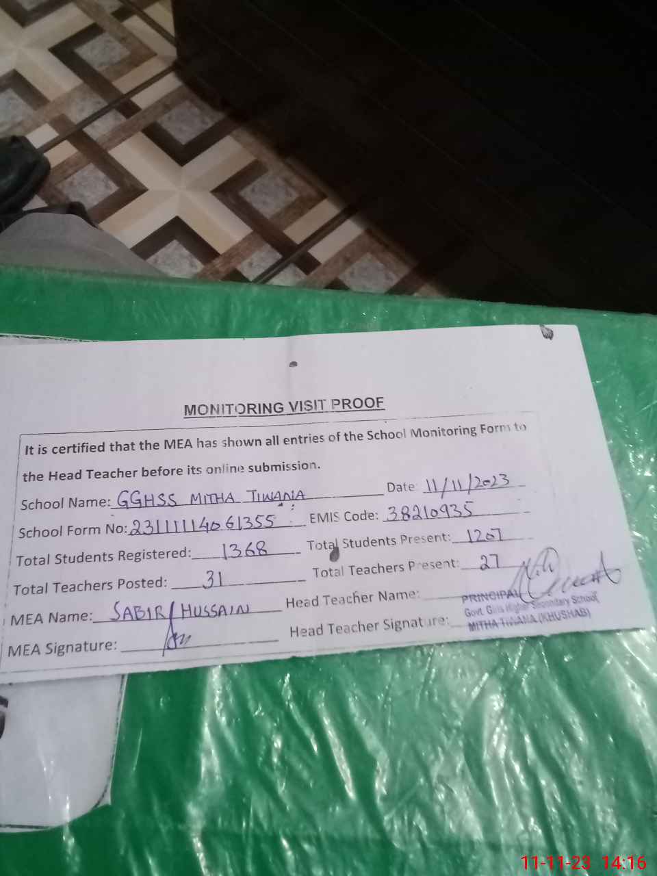 | EMIS Code: 38210935 | Name of School: GGHSS MITHA TIWANA | |||