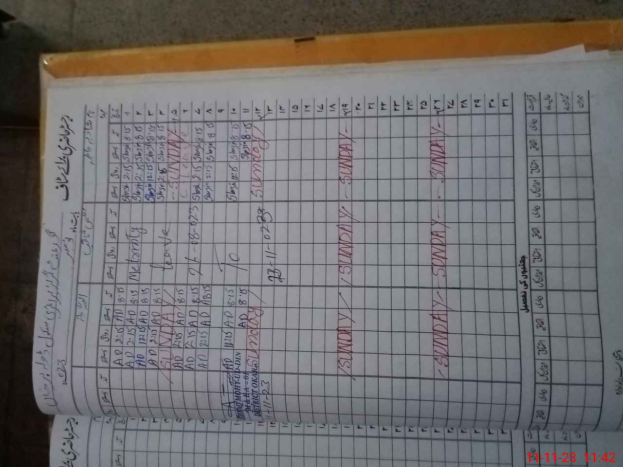 | CNIC | Full Name | Designation | R/C | Absence During Last Calender Month |