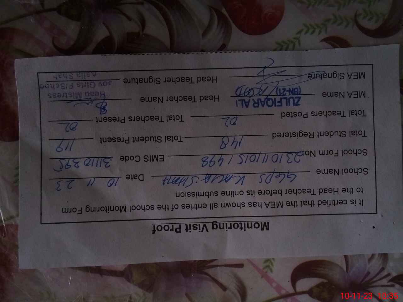 | EMIS Code: 31110395 | Name of School: GGPS KALIA SHAH | |||