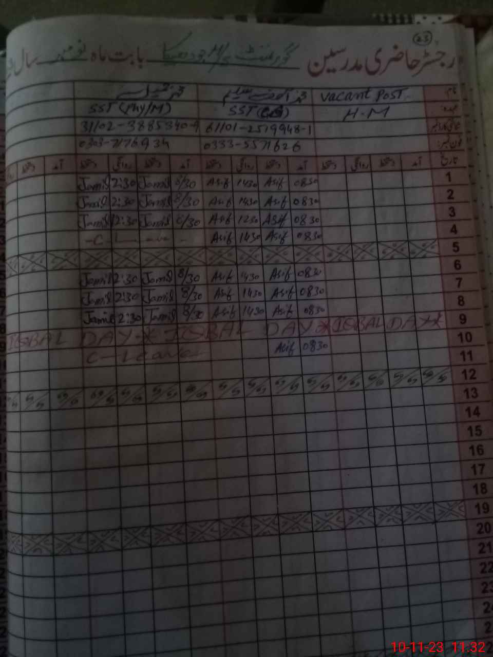| Name: MSa**** Designation: (School Headmaster's/Headmistress's) SST SCE Phone/Cell Number: 03**** |