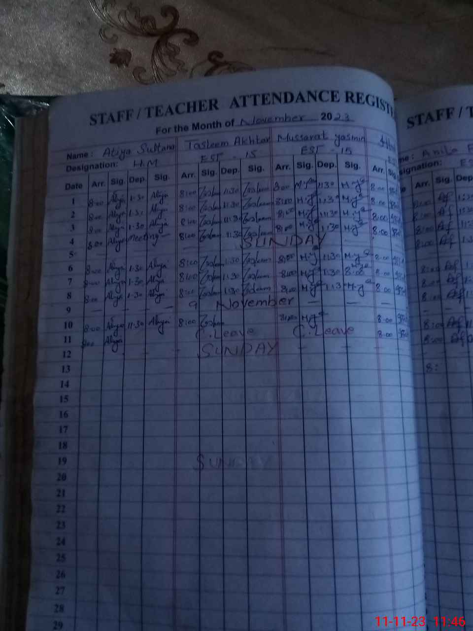 | Monitoring Date: 11-11-2023 | Start Time: 11-11-2023 11:19 AM | End Time: 11-11-2023 11:47 AM | Name of MEA: ZZ**** Iq**** | |