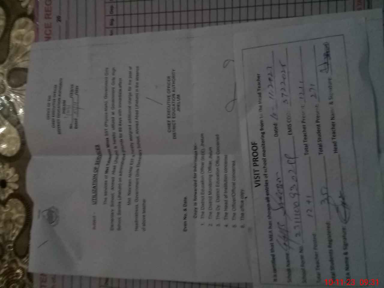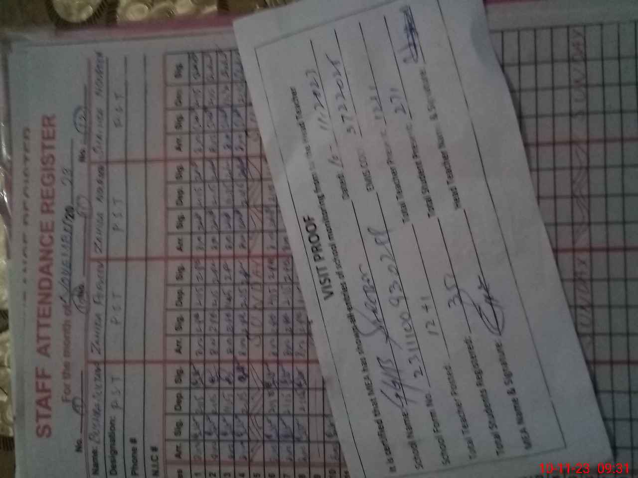| Attendance Register | Head Teacher | MEA with School | Visit Proof |