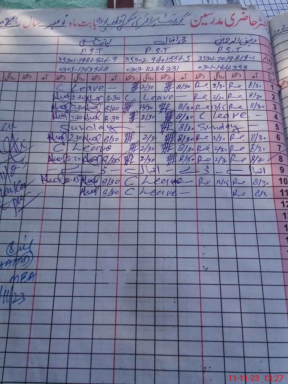 | Name: MU**** Az**** Designation: (School Headmaster's/Headmistress's) PTC/JV Phone/Cell Number: 03**** |