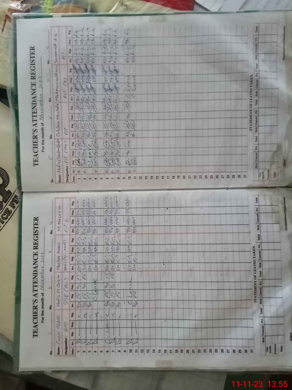 | CNIC | Full Name | Designation | R/C | Absence During Last Calender Month |