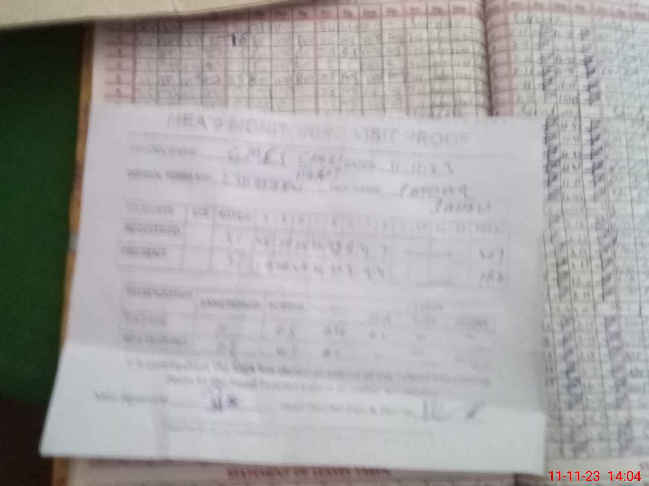 | Attendance Register | Head Teacher | MEA with School | Visit Proof |