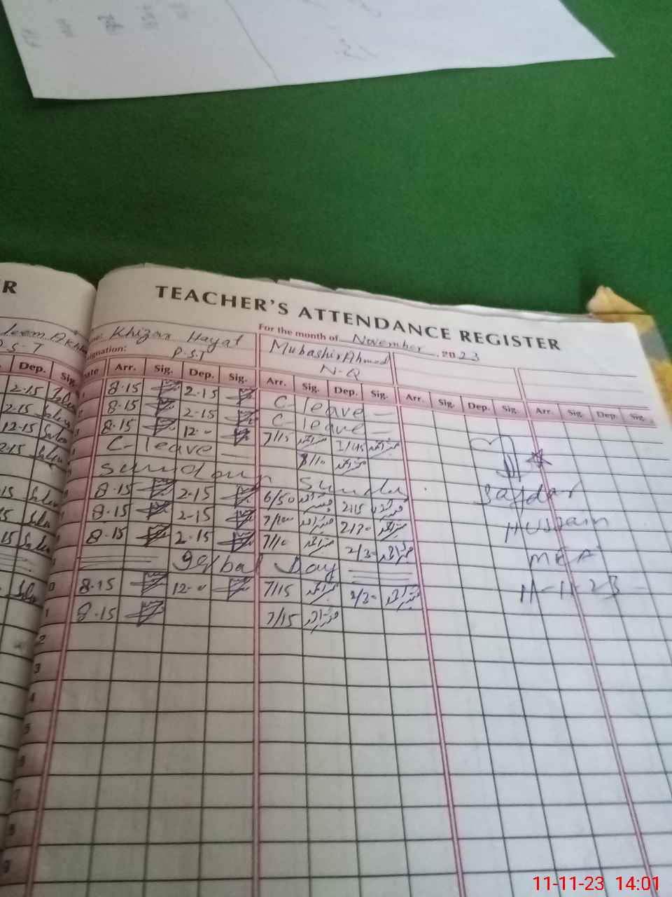 | CNIC | Full Name | Designation | R/C | Absence During Last Calender Month |