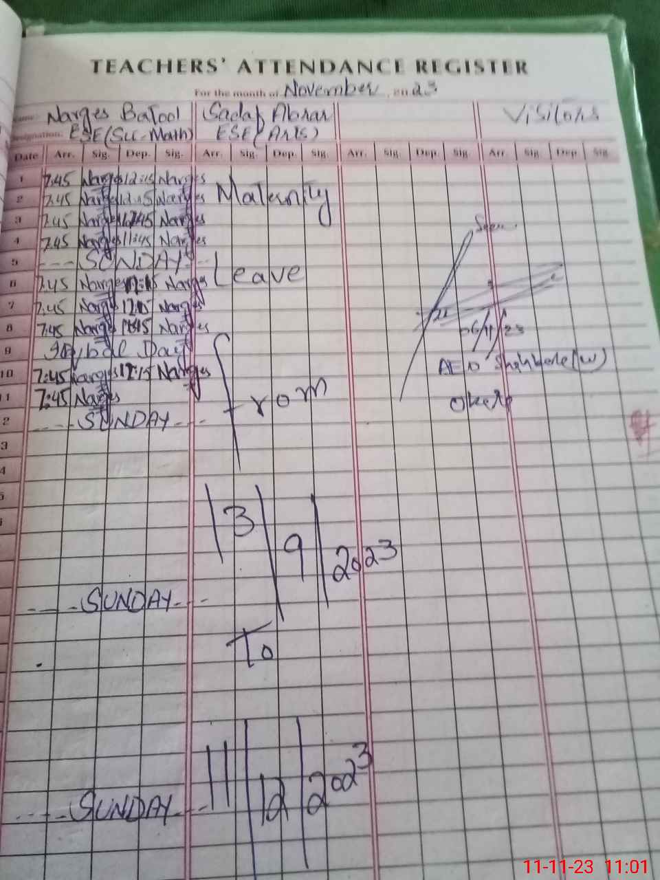 | Name: NA**** BA**** Designation: (School Headmaster's/Headmistress's) ESE Phone/Cell Number: 03**** |