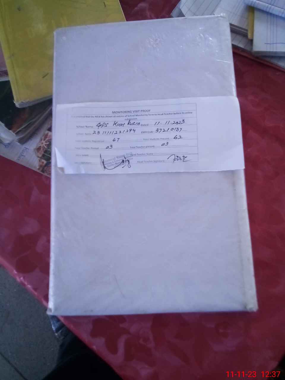 | Attendance Register | Head Teacher | MEA with School | Visit Proof |