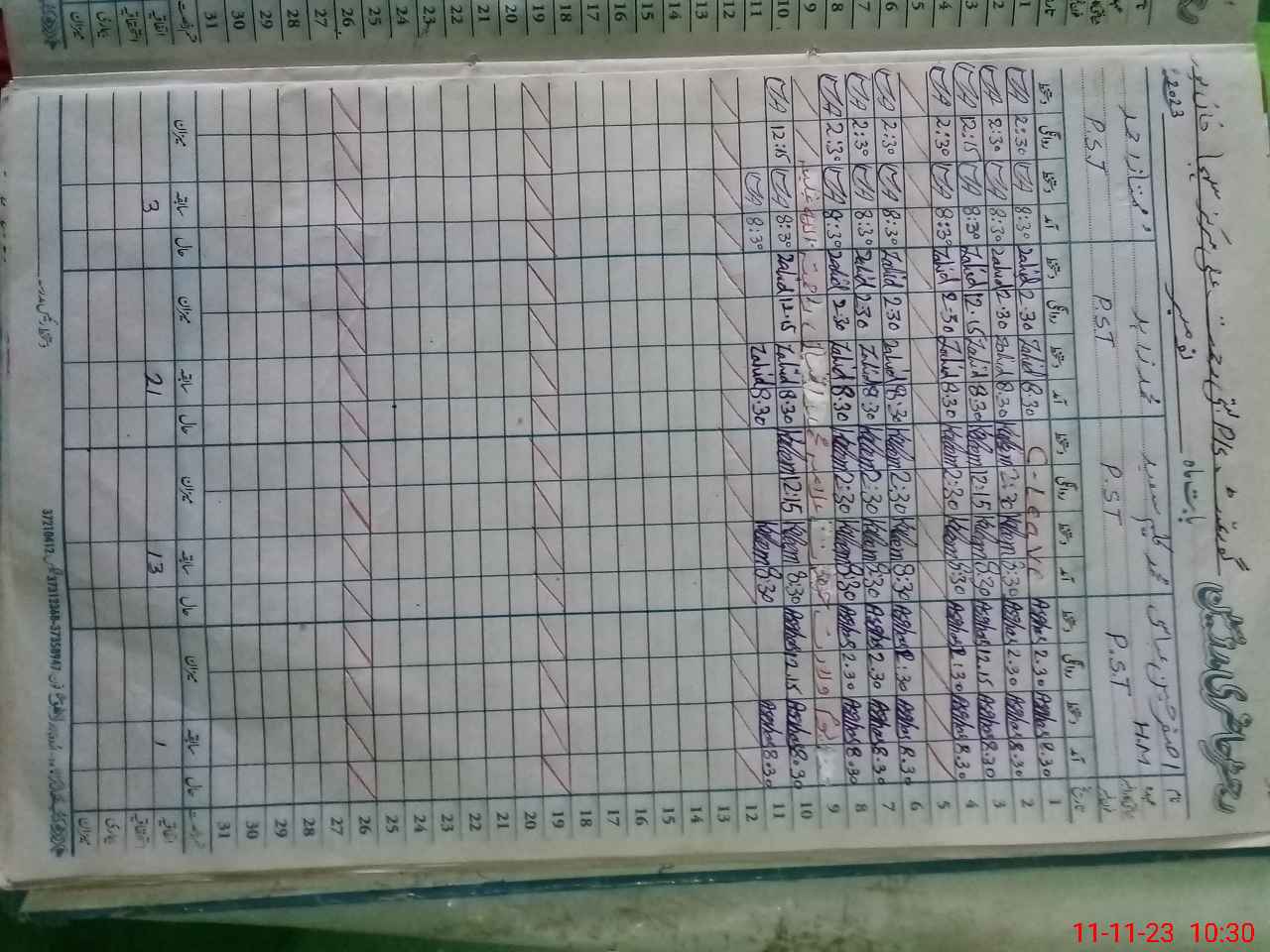 | CNIC | Full Name | Designation | R/C | Absence During Last Calender Month |