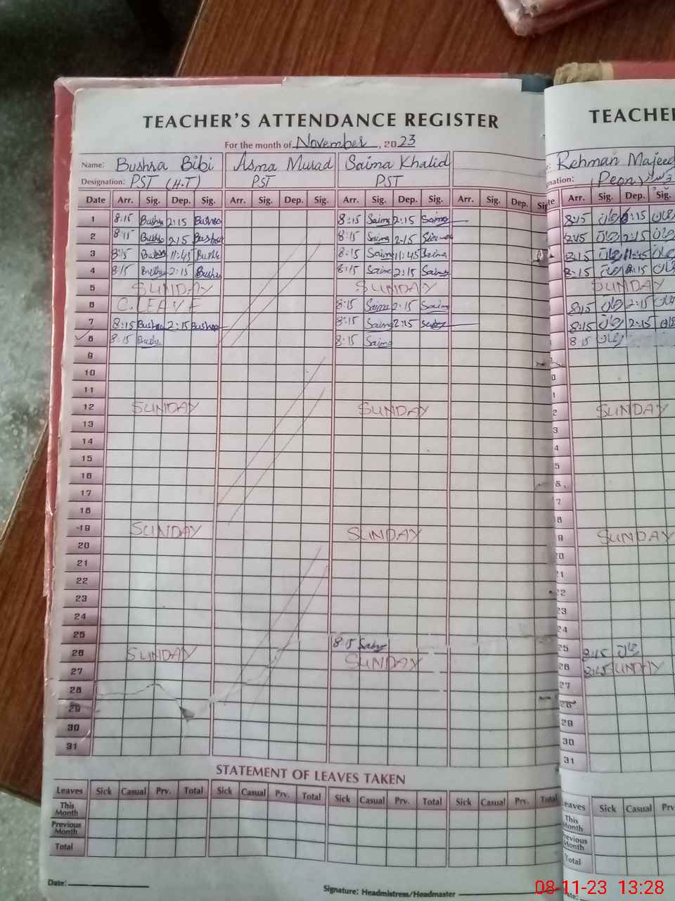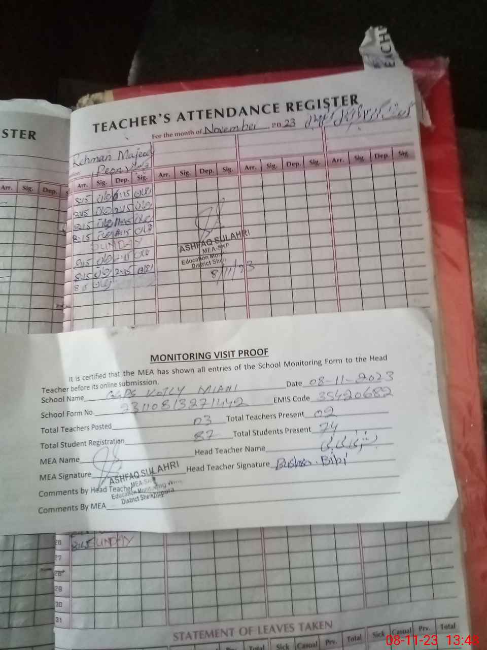 | Attendance Register | Head Teacher | MEA with School | Visit Proof |