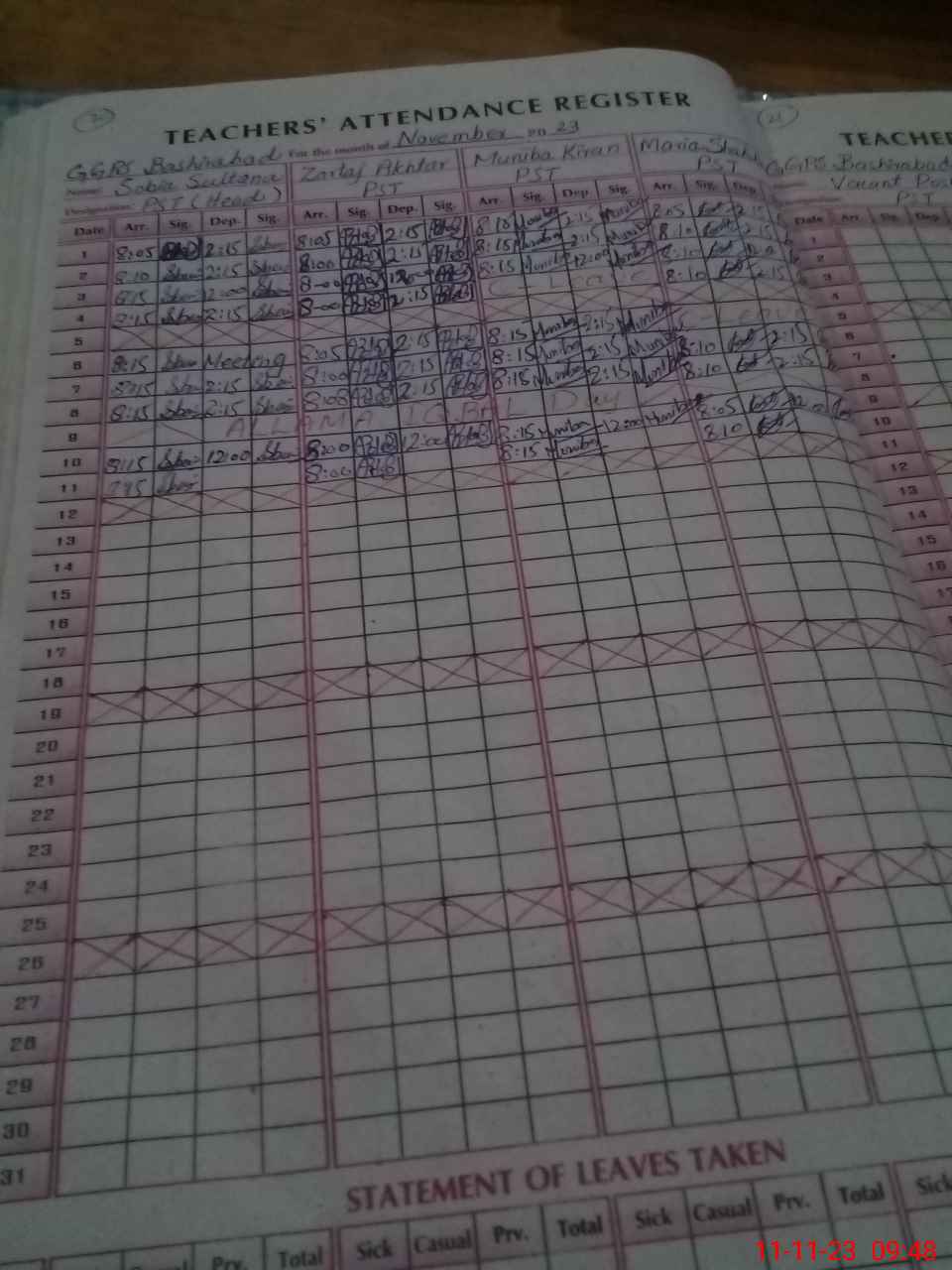 | Name: MA**** SH**** Designation: (School Headmaster's/Headmistress's) PST Phone/Cell Number: 03**** |