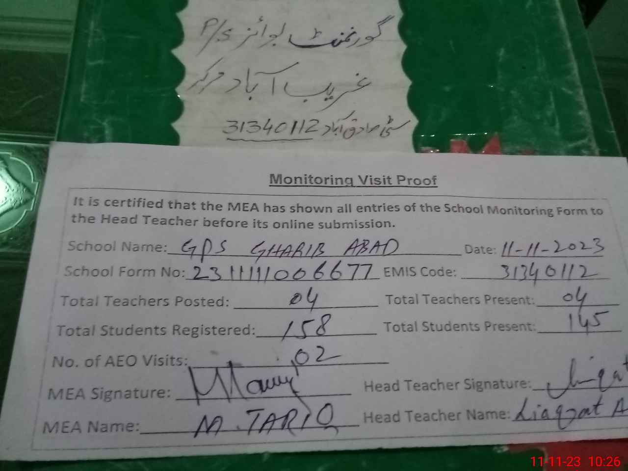 | EMIS Code: 31340112 | Name of School: GPS GHARIB ABAD | |||