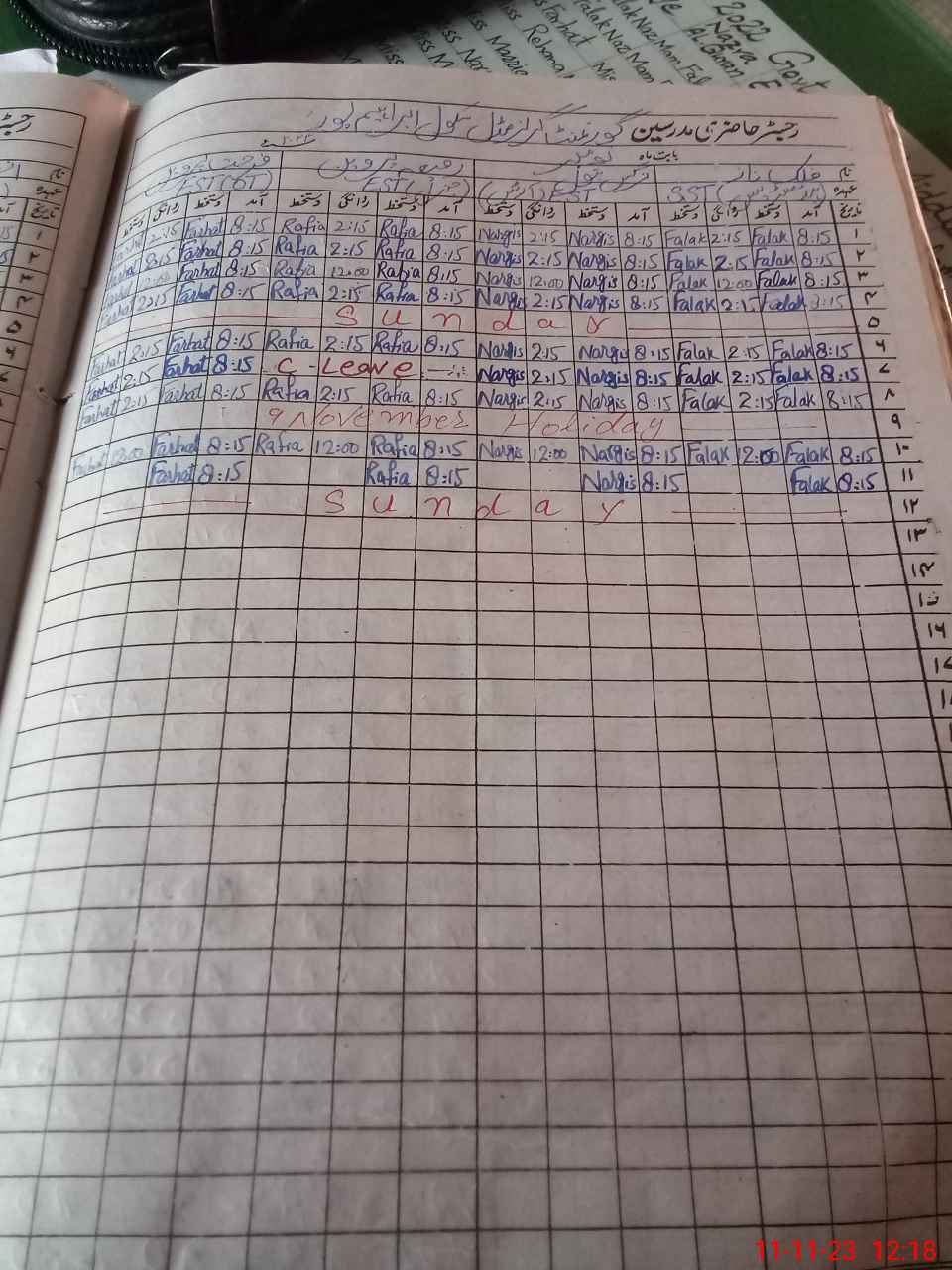 | CNIC | Full Name | Designation | R/C | Absence During Last Calender Month |